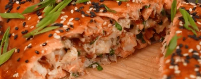 Această rețetă este un fel de mâncare care cucerește prin echilibrul său de tandrețe și aromă intensă. Somon suculent, umplutură parfumată de creveți și spanac, suluguni groși și glazură lucioasă de sos teriyaki – acest fel de mâncare se topește literalmente în gură. În plus, este gata în mai puțin de o jumătate de oră.